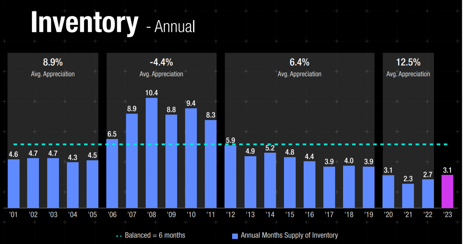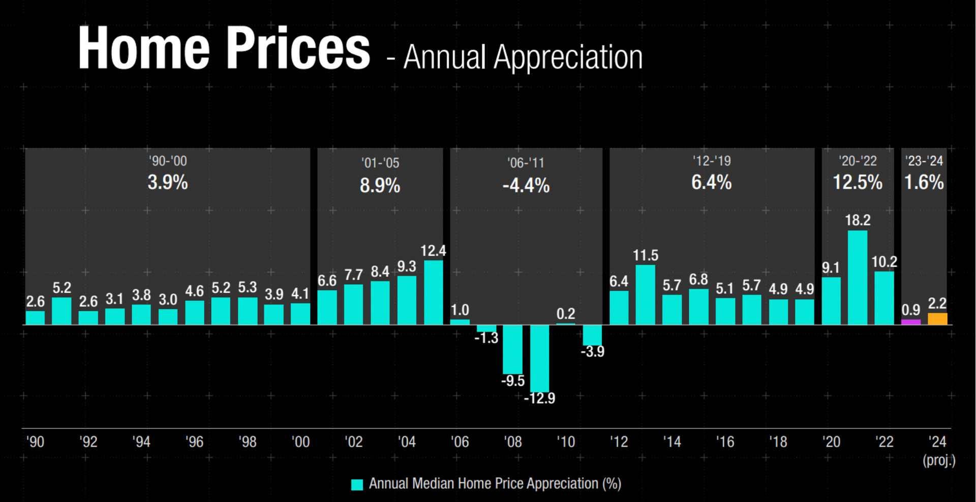 Home Prices have risen every year for the past decade. We saw a slight increase in home prices last year, despite the gloomy outlook, and expect a modest increase in 2024.