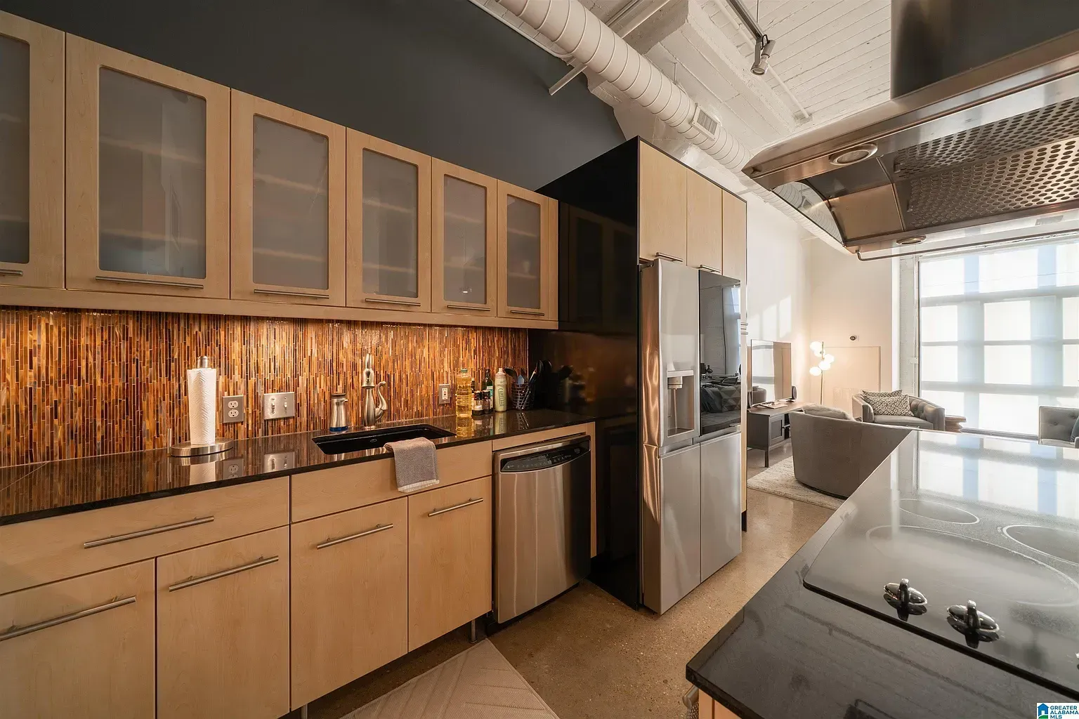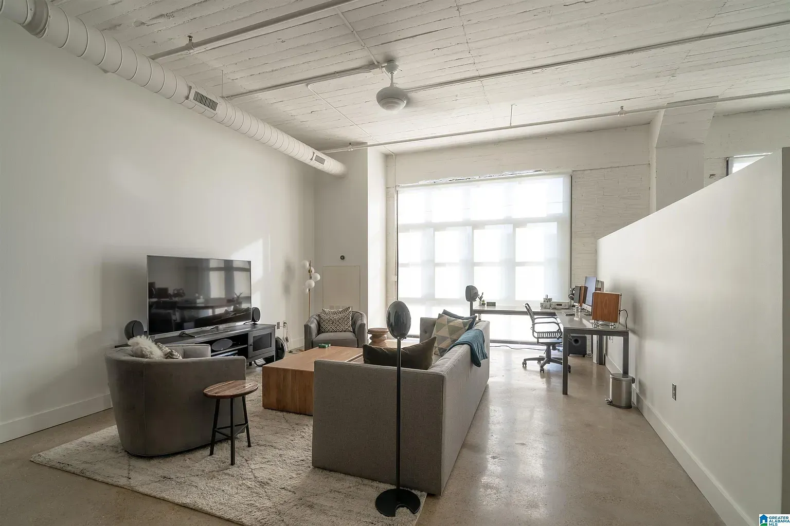 Modern 4th floor (top floor) owner-occupied unit w/ large windows, polished concrete floors, exposed ductwork, and high ceilings. This is one of only a few units to feature a premium deeded GARAGE parking space in the secure access garage. Parking space also includes a dedicated electric car charging circuit (50A NEMA 14-50). Dual A/C units come equipped with Nest thermostats. The kitchen includes granite countertops, a tile backsplash, under cabinet lighting, and stainless appliances including a brand new LG refrigerator. Large bedroom with a walk-in closet that includes custom built-in shelving and drawers. Dedicated laundry closet contains additional storage and includes a low cycle LG washer/dryer unit with full-size capacity. Bathroom contains a nice vanity with additional cabinetry and a large walk-in shower. Down the hall from the unit there is a large, secure, climate controlled storage room. This unit is directly across the street from the UAB campus.